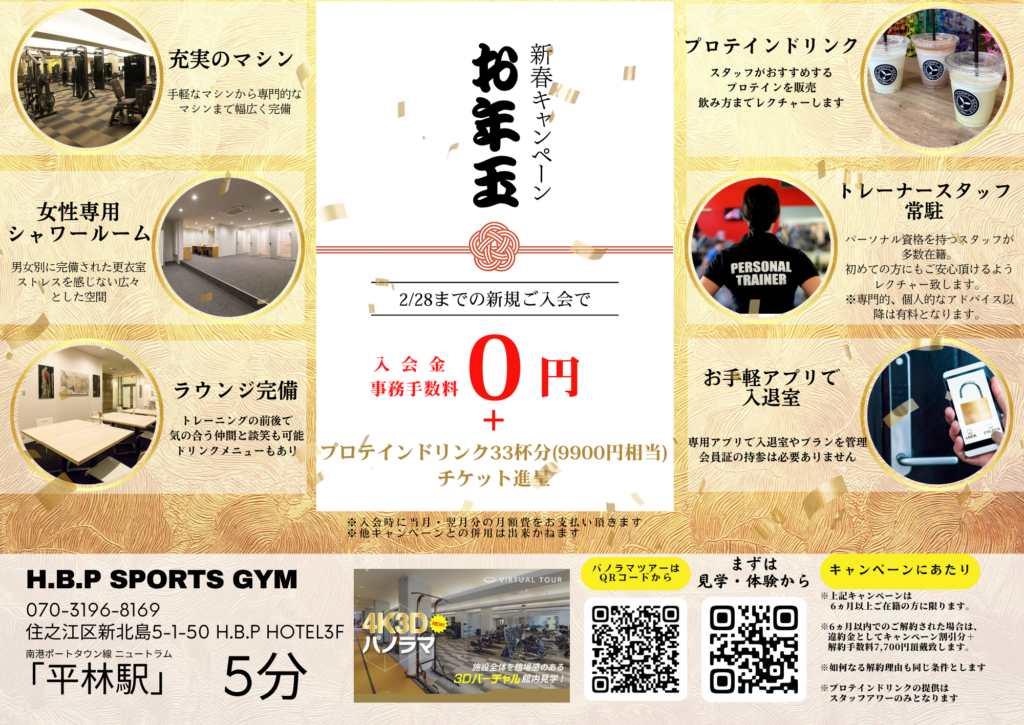 そんなあなたを応援すべく、H.B.P SPORTSは今年も、新年キャンペーンを実施しております🏋️